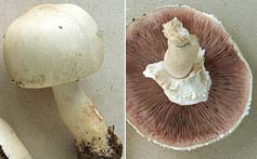 Commentaire: Contrairement à l'Agaric des jachères rencontré dans le même habitat, l'Agaric champêtre a un anneau simple et fugace, son chapeau et son pied ne jaunissent pas et il n'a pas d'odeur d'anis.