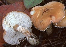Voile partiel: pâle, laissant des lambeaux à la marge du chapeau et une zone annulaire floconneuse, fugace, au haut du pied.