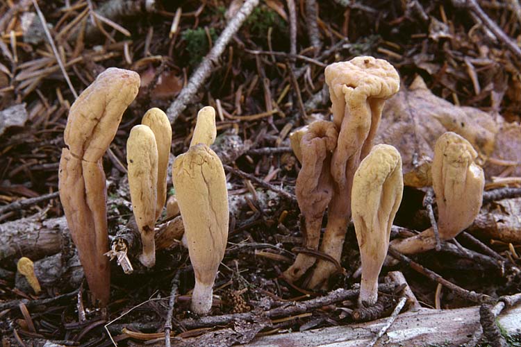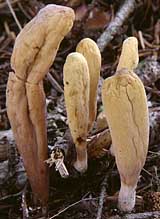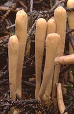 Fructification: en forme de massue ou presque cylindrique, 2-10 cm de haut, 0,4-1,2 cm de diamètre, au sommet arrondi ou un peu aplati, à surface lisse ou légèrement plissée, ocre terne à jaune brunâtre, blanchâtre à la base; à chair spongieuse, blanche, à odeur faible et à saveur douce ou un peu amère.