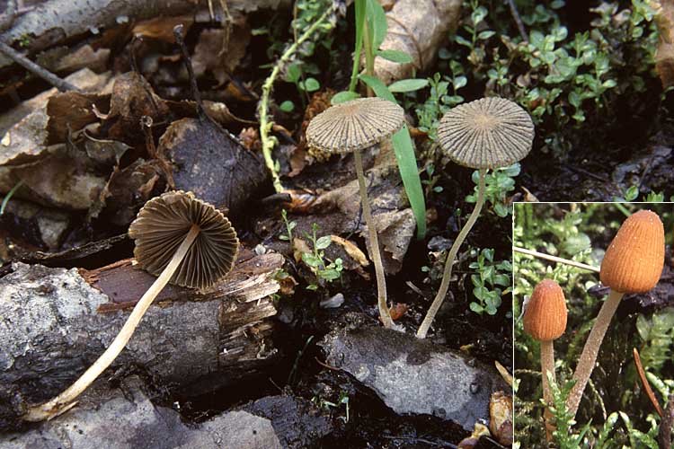 Chapeau: 1,5-3 cm de diamètre, ovoïde au début, puis conique-campanulé et conique-étalé, ne devenant pas déliquescent; à surface hygrophane, orange brunâtre au début et striée par transparence jusqu'au disque, devenant sillonnée par la suite et beige grisâtre au sec, brun-gris olivâtre lorsque imbu, le disque conservant une teinte orange-brun; à chair très mince, non déliquescente, sans odeur ni saveur particulières.