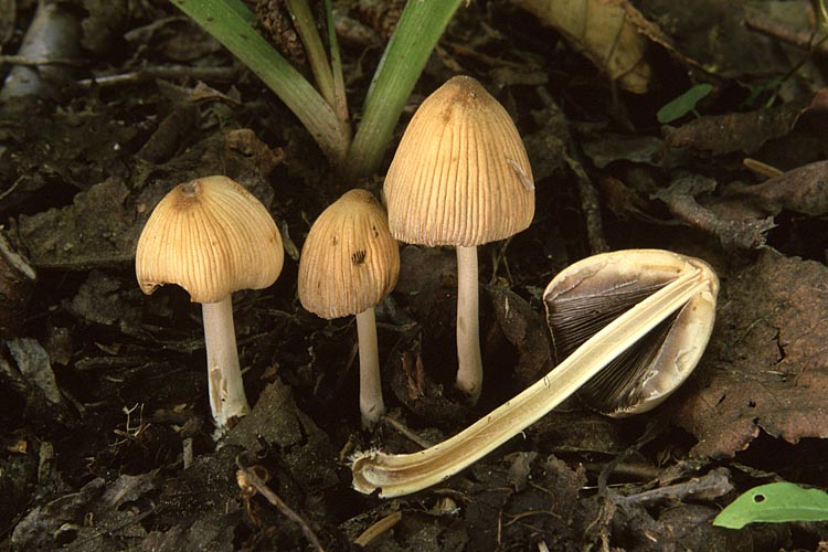 Chapeau: 2-5 cm de haut au début, 2-5 cm de diamètre lorsque étalé, ovoïde à cylindrique dans le jeune âge, puis conique-convexe, campanulé et étalé; à surface recouverte au début de petits flocons ou de petites écailles détersiles blanchâtres à grisâtres sur fond brunâtre, devenant glabre et grise avec l'âge, le centre conservant une teinte de brun; à marge striée par transparence presque jusqu'au centre, devenant vite relevée et déliquescente; à chair très mince, sans odeur ni saveur particulières.