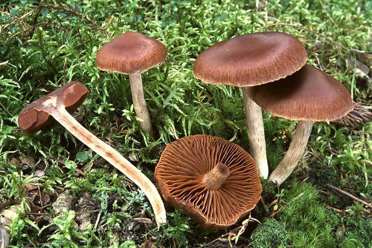 | Sous-genre Telamonia: Espèce hygrophane, le plus souvent brune ou violacée. |