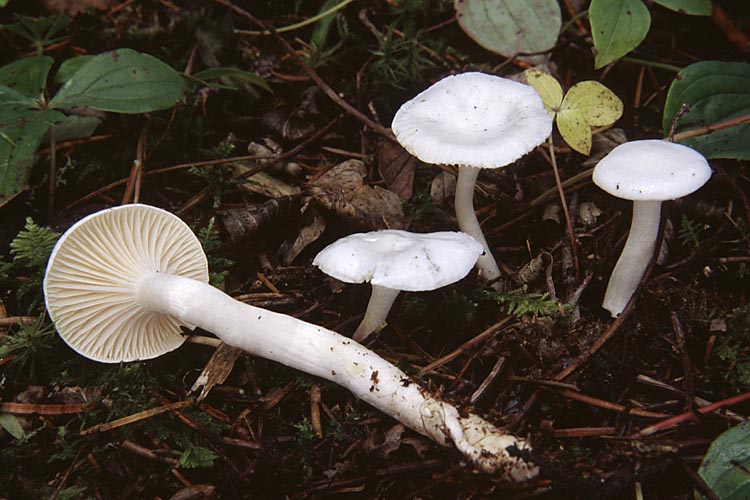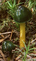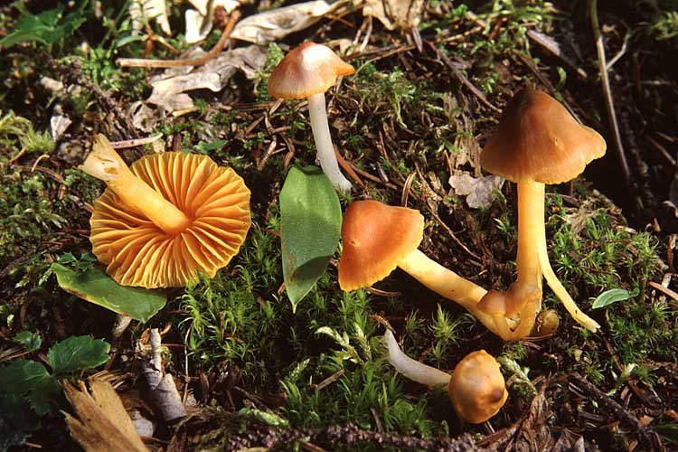 Habitat: En groupes dans la mousse ou sur sol mal drainé, sous les conifères, en août et en septembre. Rare