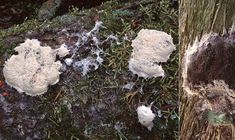 Habitat: Espèce peu fréquente croissant en forêt sur le bois mort ou les débris ligneux. Le spécimen illustré ici a été photographié le 28 août 1999; la veille il était blanc tapioca et je n'avais pas ma caméra avec moi ...