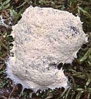 Champignon: formant de petites fructifications (sporanges) bleu-gris, subglobuleuses, 0,3-0,5 mm de diamètre, sans pied, constituées d'une enveloppe calcaire (le péridium) et, à l'intérieur, de la masse brun pourpré des spores.