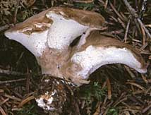 Carpophore: annuel, sans pied, en forme de bourrelet ou de console, largement fixé au substrat, 3-6 cm de large, 2-4 cm de projection et 2-4 cm d'épaisseur au point d'attache; à chair tendre, spongieuse et juteuse, blanchâtre, rosissant puis brunissant à la coupe.
