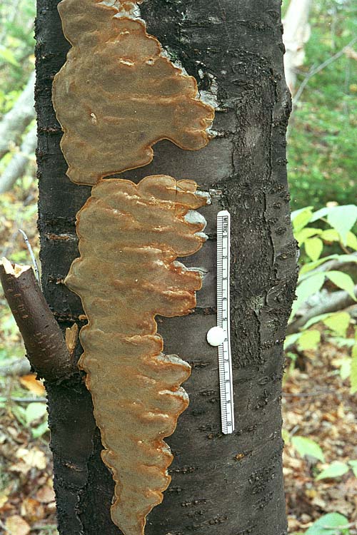 Habitat: Sur troncs morts de Prunus, tout au long de l'année. À Sept-Îles on le rencontre sur le Cerisier de Pennsylvanie (Prunus pensylvanica) communément appelé "Petit merisier". Occasionnel