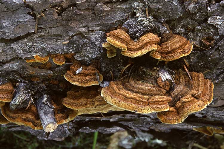 Habitat: En groupes superposés ou imbriqués sur les troncs de conifères, sapins ou épinettes noires, parfois aussi sur les feuillus, d'août à octobre. Rare