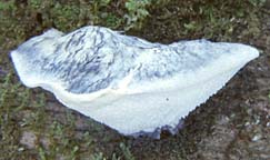 Carpophore: annuel, sans pied, en forme de console, largement fixé au substrat, 1-6 cm de large, 1-4 cm de projection et 0,5-1,5 cm d'épaisseur au point d'attache; à chair tendre puis bientôt tenace, blanche, grisâtre ou jaunâtre avec l'âge.