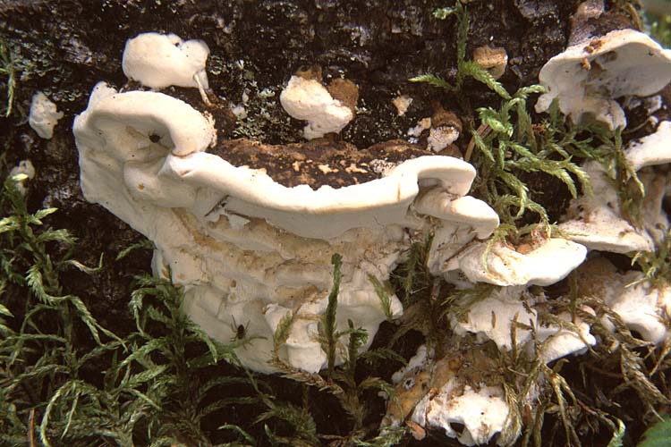Habitat: En troupes nombreuses formant des rangées d'individus superposés ou imbriqués, souvent fusionnés latéralement, sur les troncs morts de conifères encore debout ou tombés au sol, principalement de sapins et d'épinettes. Comme les carpophores se décomposent très lentement, on en rencontre toute l'année mais la période de croissance est surtout la fin de l'été et l'automne. Commun