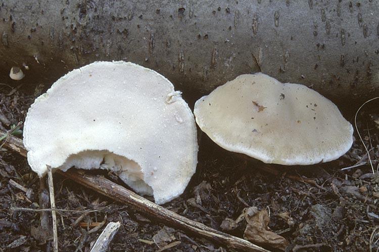 Carpophore: annuel, sans pied, en forme de console, 2-10 cm de large, 2-8 cm de projection et 0,5-2 cm d'épais, semi-circulaire, flabelliforme ou presque circulaire, largement convexe ou aplani; à chair tendre, spongieuse et aqueuse au frais, 2-15 mm d'épaisseur, blanche.