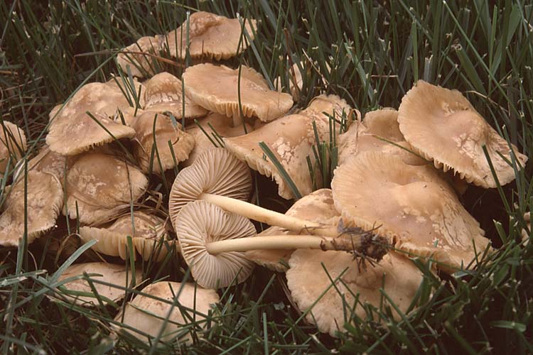 Habitat: En groupes dans les prés, les clairières ou en forêt, souvent là où du gazon coupé ou des débris organiques ont été jetés, en septembre et en octobre. Occasionnel