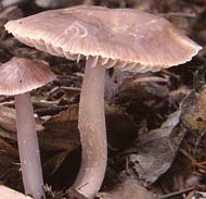 Lames: adnées ou décurrentes en filet, très larges, subespacées, lilacées ou violacées, blanchâtres à l'arête.
