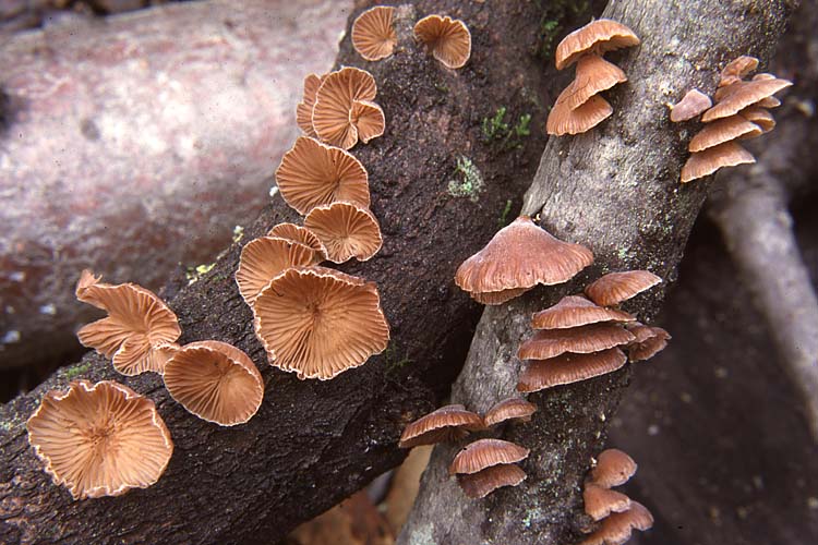 Habitat: En groupes superposés et imbriqués sur les branches et les troncs morts de feuillus, particulièrement sur les aulnes, en septembre et en octobre. Occasionnel