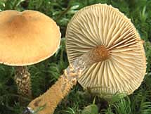 Lames: adnées, larges, serrées, d'abord crème puis beige pâle.