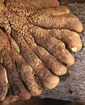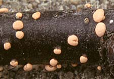 Nodules: formés à l'intérieur, de grosses cellules hypertrophiées du bois et à l'extérieur, d'une croûte dure, brune ou noire à la surface de laquelle se creusent des logettes séparées les unes des autres mais serrées, contenant des asques claviformes à 8 spores.