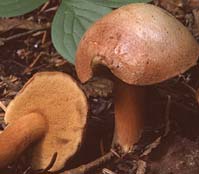 Chapeau: 5-20 cm de diamètre, hémisphérique puis convexe, presque étalé à la fin; à surface sèche, lubrifiée par temps humide, lisse, plissée ou ornée de petits cratères, brun cuir, brun rougeâtre ou brun-jaune, souvent plus pâle ou plus jaune à la marge; à marge non débordante; à chair ferme, épaisse, blanche, immuable à la coupe, à odeur et saveur agréables.