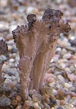 Fructification: 3-6 (10) cm de haut, simple ou formée d'un tronc et de quelques branches; aux branches 0,3-0,7 cm de large, cylindriques ou comprimées, peu ou non ramifiées, aux extrémités obtuses, parfois avec de rares pointes aiguës; à surface lisse, bosselée ou ridée longitudinalement, blanchâtre, crème ou jaunâtre, souvent ocre aux pointes; à chair cassante, blanche, à odeur faible et à saveur douce.