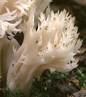 Fructification: coralloïde, 2-7 cm de haut et jusqu'à 5 cm de large, formée de branches isolées ou naissant d'un tronc commun; aux branches lisses ou un peu sillonnées, plusieurs fois ramifiées vers le sommet, souvent comprimées, blanchâtres à crème ou ocracées, aux extrémités terminées par plusieurs petites dents en forme d'aiguillons, la fructification entière souvent colonisée par un parasite qui lui confère alors une teinte grisâtre à gris-lilas; à chair cassante, blanche, à odeur faible et à saveur douce.