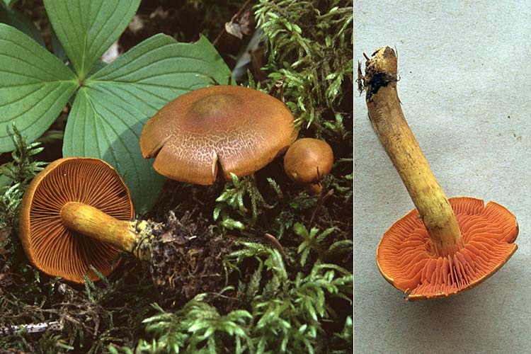Lames: adnées à émarginées, serrées, d'un beau orange safran vif au début, virant au brun orangé avec l'âge.