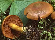 | Sous-genre Cortinarius: Chapeau sec, non hygrophane, aux couleurs vives, souvent feutré, méchuleux ou squamuleux. |