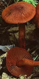 | Sous-genre Dermocybe: Chapeau et pied sec, non hygrophane, colorations intenses, jeunes lames jaunes, orange, rouges ou vertes. |