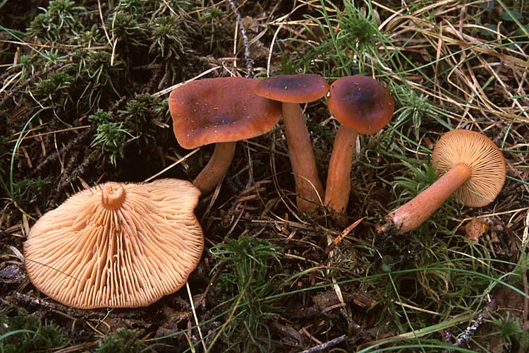 Habitat: En groupes dans la litière humide ou la mousse de sphaigne, sous les bouleaux souvent mêlés de conifères, en août et en septembre. Commun