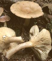 Lames: subdécurrentes, étroites, très serrées, certaines fourchues près du pied, blanchâtres puis crème rosé.