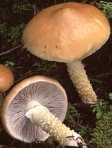Voile partiel: membraneux laissant des débris à la marge du chapeau ainsi qu'un petit anneau fugace, ou seulement des fragments, au haut du pied.