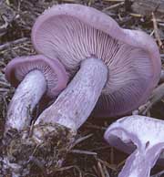 Lames: adnées à échancrées, assez étroites, serrées, à lamellules intercalées, lavande, lilas bleuté ou violettes au début, développant une teinte brunâtre avec l'âge.