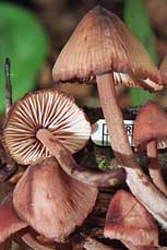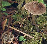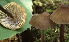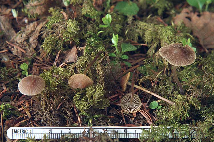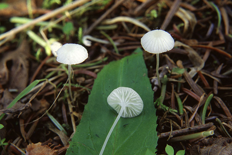 Commentaire: Les deux séries de mesures de spores proviennent de spécimens de deux récoltes différentes ; l'un (15 octobre 2003) avait des basides tétrasporées et l'autre (7 juillet 2004) des basides bisporées. Le (?) à droite de Synomymes signifie que je ne suis pas entièrement convaincu que Mycena delicatella soit la même espèce que le Mycena lactea des auteurs européens.