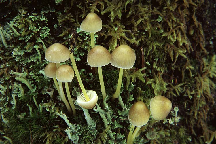 Habitat: En groupes dans la mousse et le lichen recouvrant les rochers ou les troncs de conifères, de juin à septembre. Occasionnel