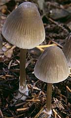 Chapeau: 1-3 cm de diamètre, conique à conique-campanulé, s'évasant quelque peu avec l'âge; à surface lisse, striée par transparence sur les 2/3 du rayon, brun à brun gris ou brun jaunâtre, plus foncé sur le disque et plus pâle vers la marge; à chair très mince, concolore, à forte odeur nitreuse et à saveur plutôt douce.